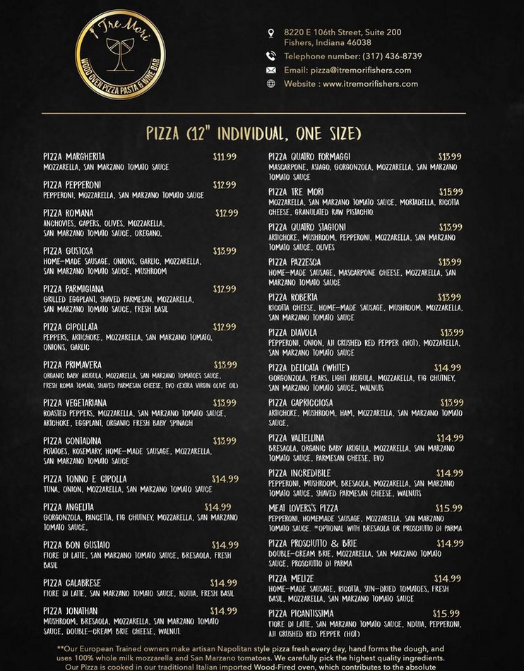 Introducing the menu at I Tre Mori, this Indianapolis gem promises an authentic Italian culinary experience that will transport you straight to Italy. Nestled conveniently in the heart of the city, it excels in artisan pizzas cooked in a traditional brick oven, showcasing the essence of flavorful Italian ingredients.